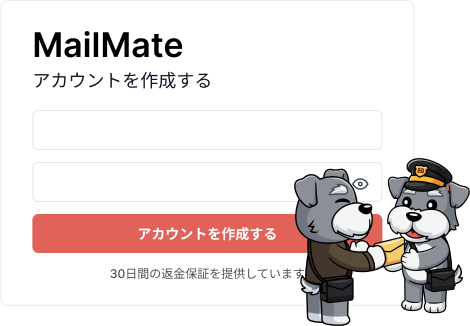 「support@mailmate.jp」までご連絡いただくか、又はこのページの右下にあるチャット機能でお問合せください。
