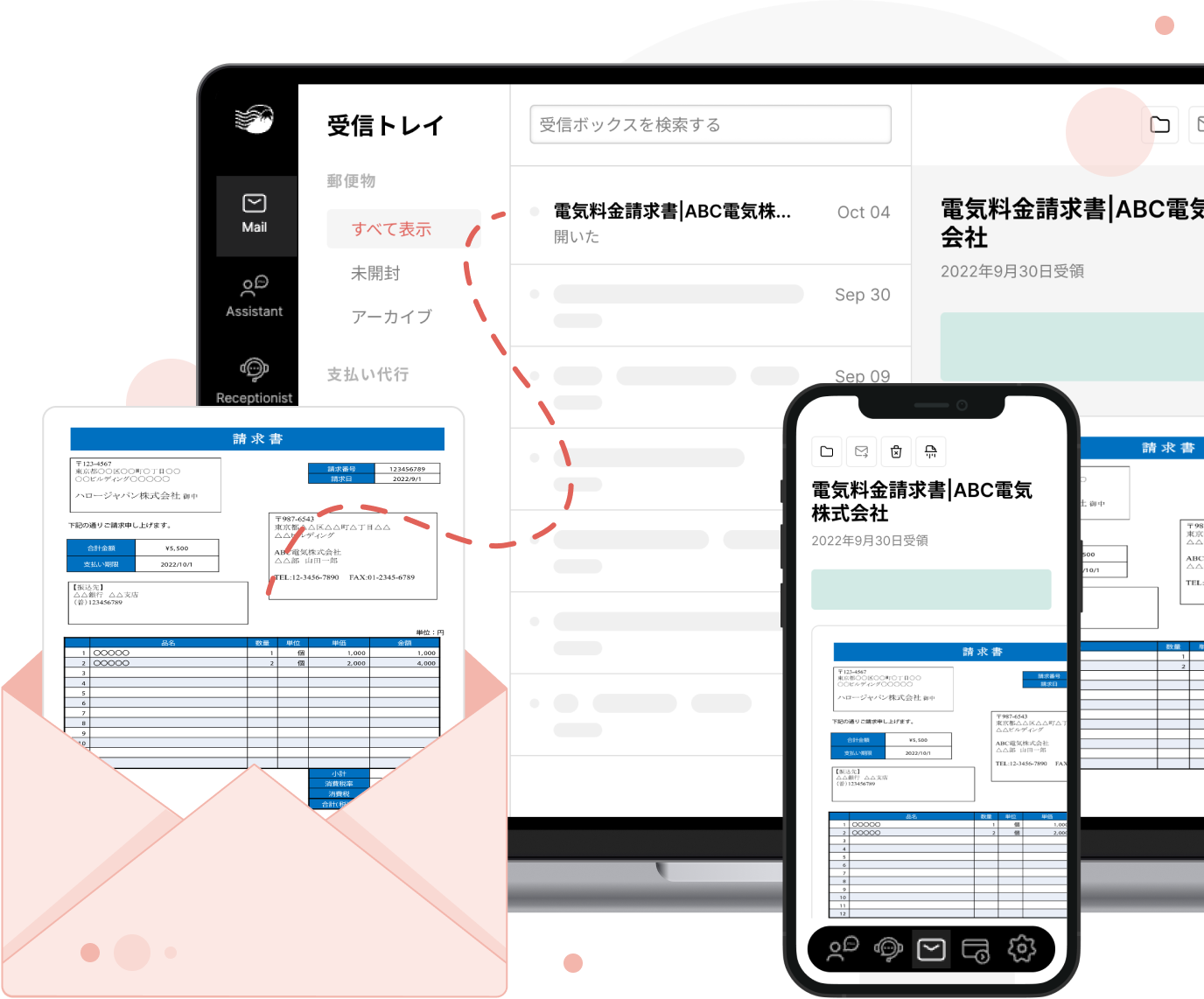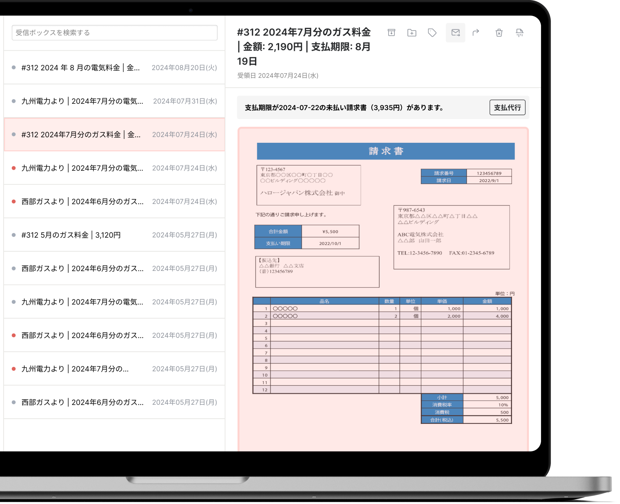 公共料金などの請求書の支払いを MailMateが代行。
